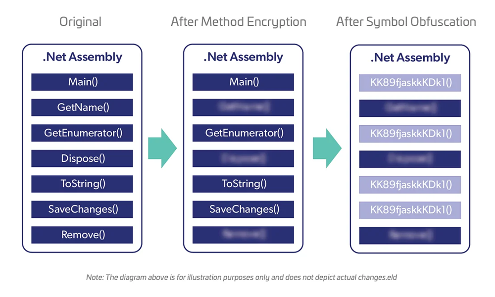 >使用可執行文件和庫加密、方法級和類級別加密等技術。